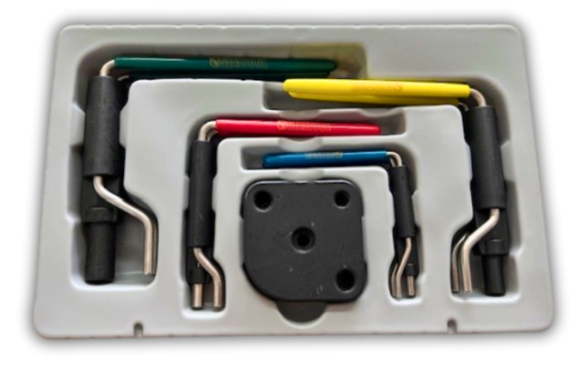 Montageset für Nutringe – Präzise, schnell, mühelosUnserprofessionellesNutring-MontagesetistdieidealeLösungfürdenEinbauvonNutringemiteinemDurchmesservon22mmbis165mm.Das5-teiligeSetwirdineinerrobusten,praktischen Aufbewahrungsboxgeliefert–immergriffbereit,immereinsatzbereit.MiteinemeinfachenHandgriffwirdder Nutringnachinnengedreht,wodurchsichseinDurchmesserverkleinert.NachdemEinsetzenindieFührungsbuchseöffnenSiedieHebel–undder Ring schnappt präzise und sicher in die Nut ein.
